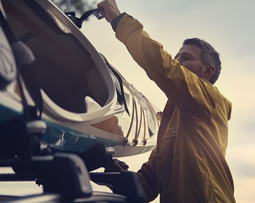 This convenient kayak cradle lets you transport two kayaks on the roof simply and securely – or one kayak plus extra equipment. For easy loading, the kayak can be angled towards the cradle. When not in use, it can be easily folded down towards the load carrier.